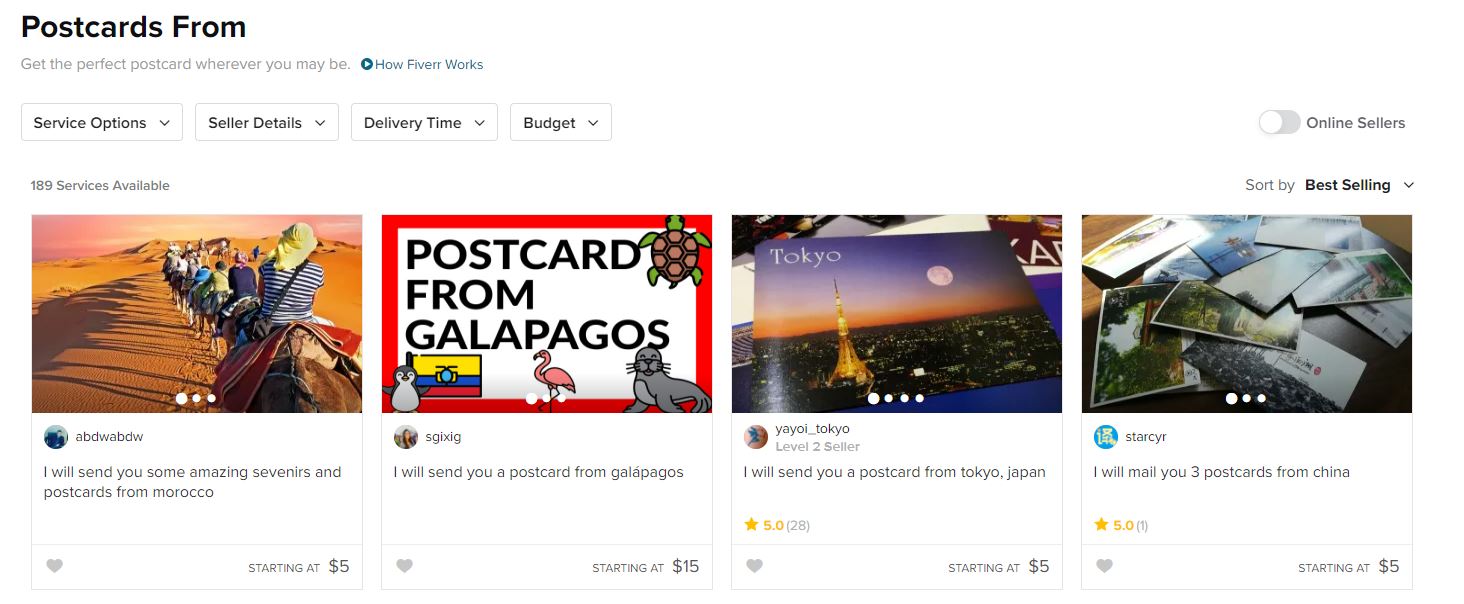 Source. Fiverr’s traveling postcards services deliver personalized greeting cards from Australia, Morocco, Germany, and other locations from across the globe. These greeting cards can help you showcase scenery or a city to your friends and family so you can brighten their mailbox. 4. Create Photo Collages