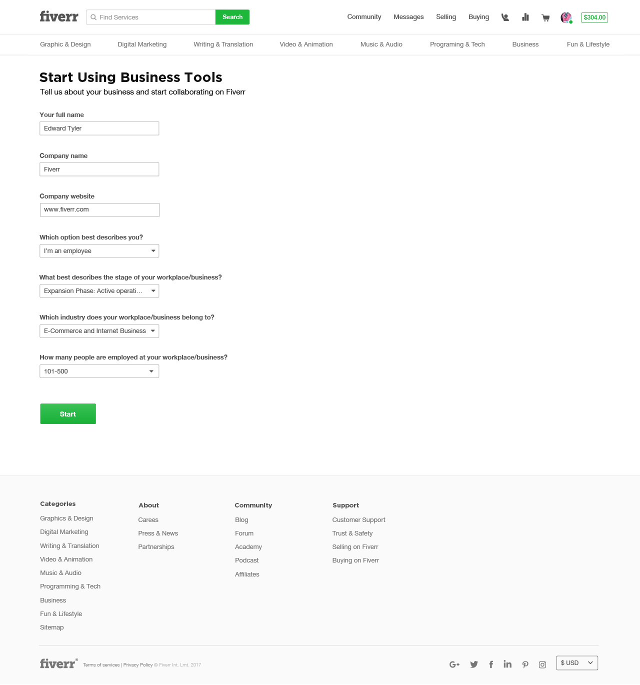 First, we ask doers to tell us a bit about their company and their business goals. You do have to be a registered Fiverr user to be able to join and use the Business Tools.