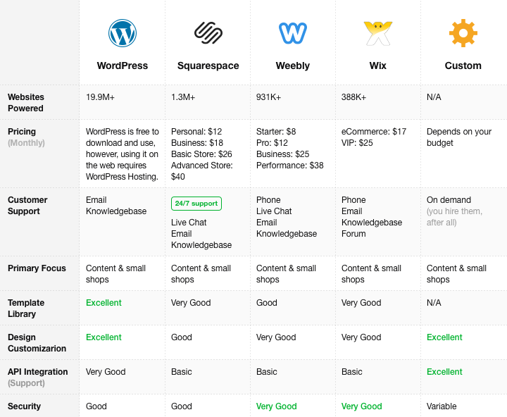 Choose your website platform, now. And for those of you who prefer to weigh your options the old fashioned way, we put together handy chart analyzing the strengths and weaknesses of the top blog-building platforms for the visual learners out there.