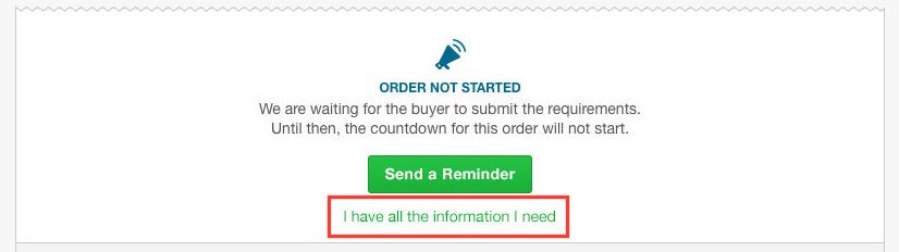..and then choose "I have all the information I need."[/caption]With new features, come new rules. If, as a seller, you choose to skip the Gig requirements stage, the order countdown will begin immediately. So be confident that you’re ready to start work and have all the information you need to deliver.