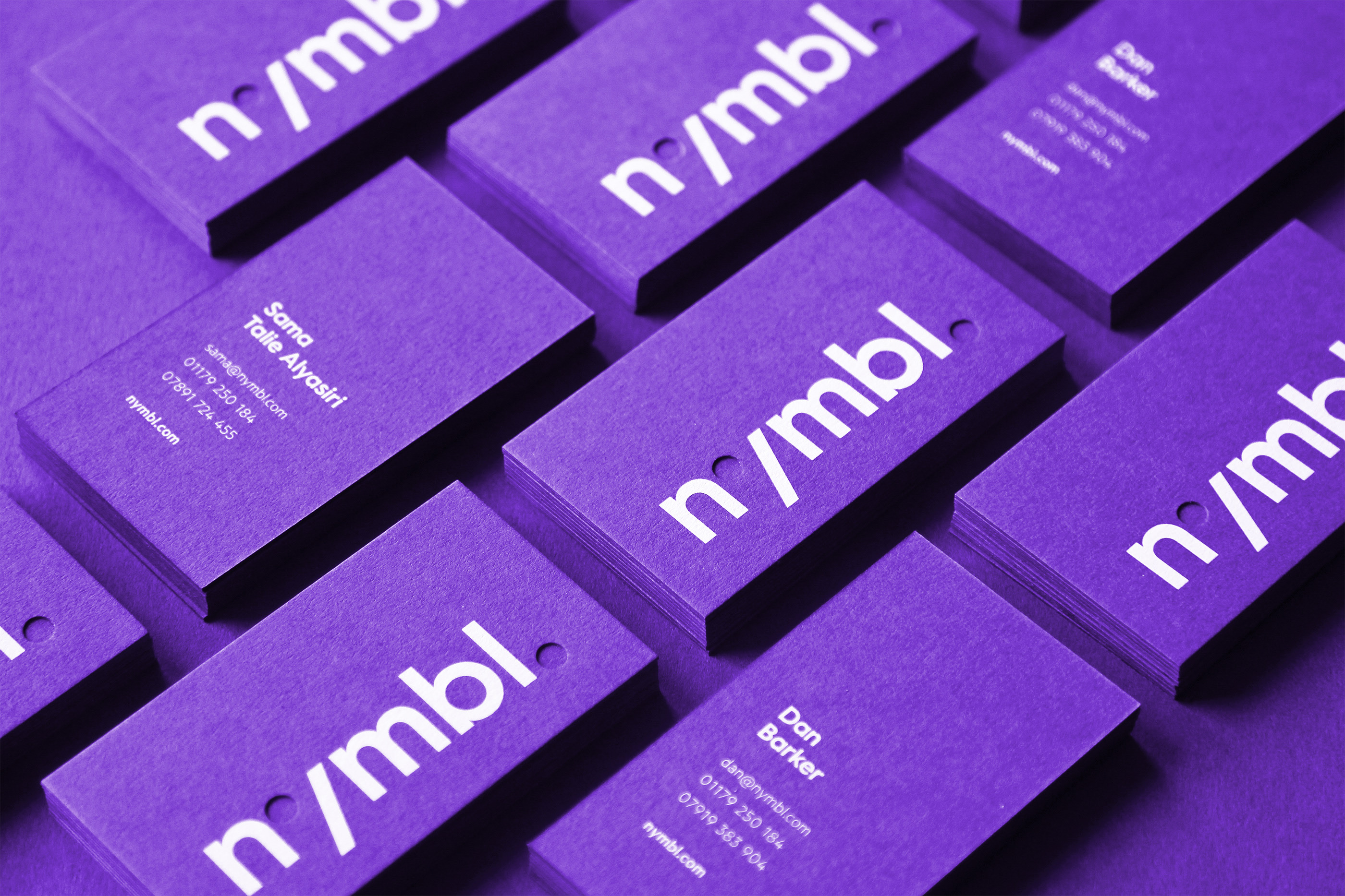 5. Nymbl's playful purple cards immediately catch your attention with its unique logo and hole punches.
